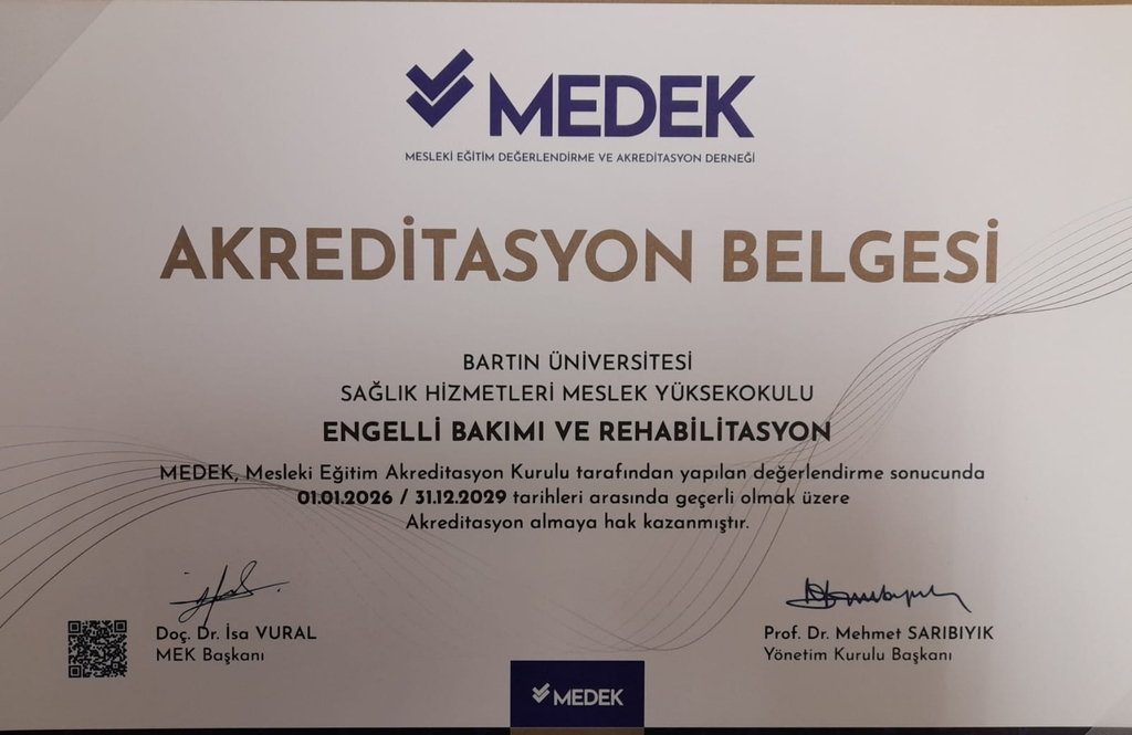 Sağlık eğitiminde kaliteyi hedefleyen Sağlık Hizmetleri Meslek Yüksekokulu'nun İlk ve Acil Yardım, Engelli Bakımı ve Rehabilitasyonu ile Evde Hasta Bakımı programları, Mesleki Eğitim Değerlendirme ve Akreditasyon Derneği (MEDEK) tarafından yapılan kapsamlı değerlendirmeler sonucu başarılı bulundu.4 Yıllık Kalite Güvencesi